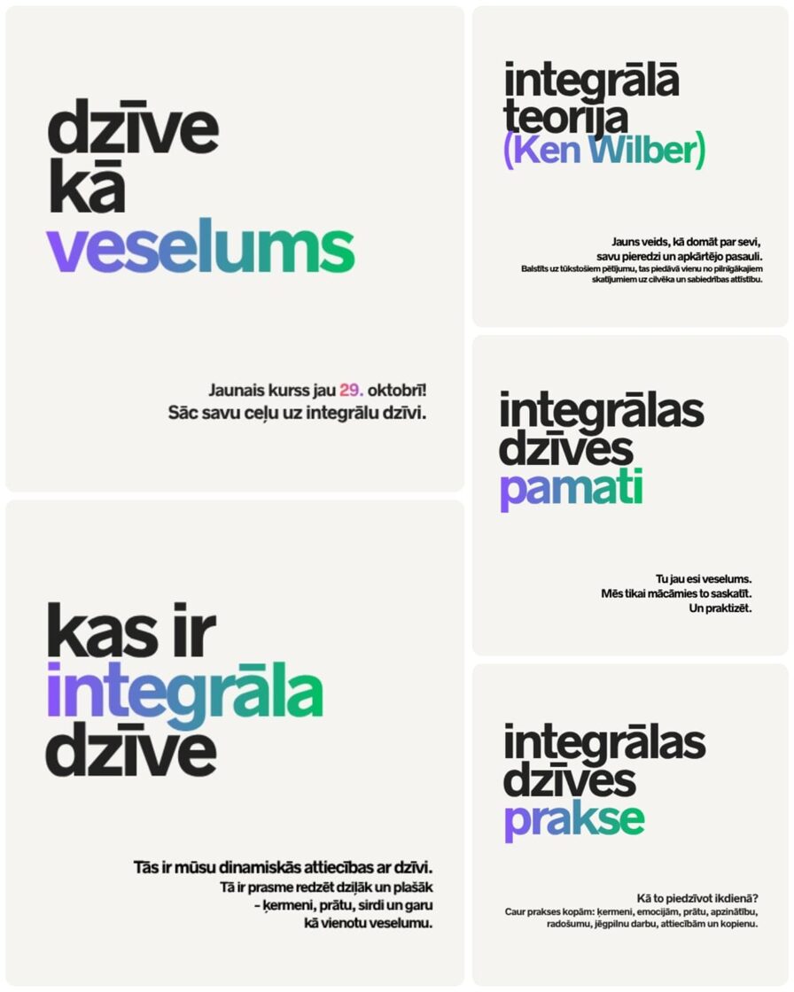 Dzīve kā veselums – ievads integrālajā skatījumā, mikroprakses, pašdiagnostika.
